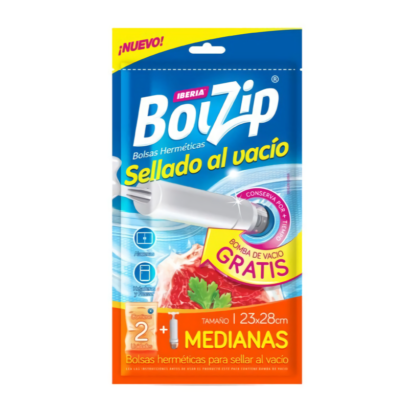 BOLZIP BOLSA AL VACIO + BOMBA 2U 23CM X 28CM